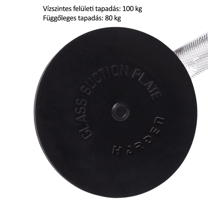 Ez az erős, nagy teherbírású vákuumos tapadókorong bármilyen sima, sík felülethez rögzíthető, és sokféle célra használható. A legtöbb SUV csomagtérajtóra, teherautó platóajtóra és autó csomagtartóra felszerelhető állandó rögzítési pont, szerelvények vagy szerszámok nélkül. Alkalmas üveg, szélvédő és más nehezen kezelhető tárgyak emelésére és mozgatására. Aluminium ház. Természtes gumitárcsa. Vízszintes felületi tapadás: 100 kg. Függőleges tapadás: 80 kg. Könnyen fogható fogantyúk.