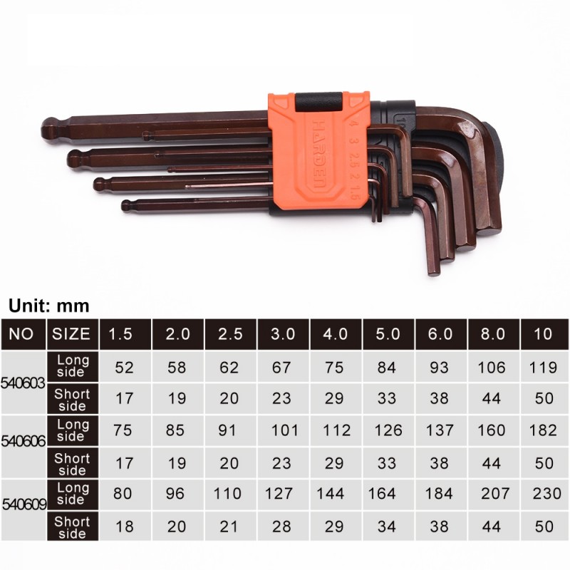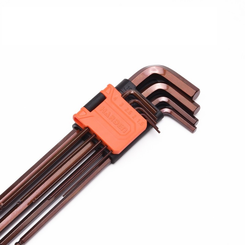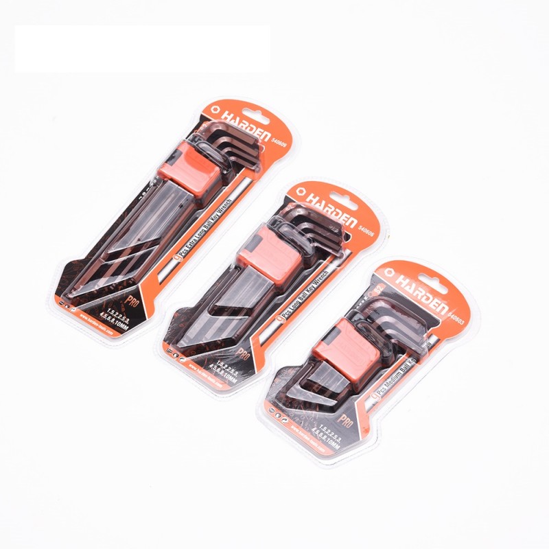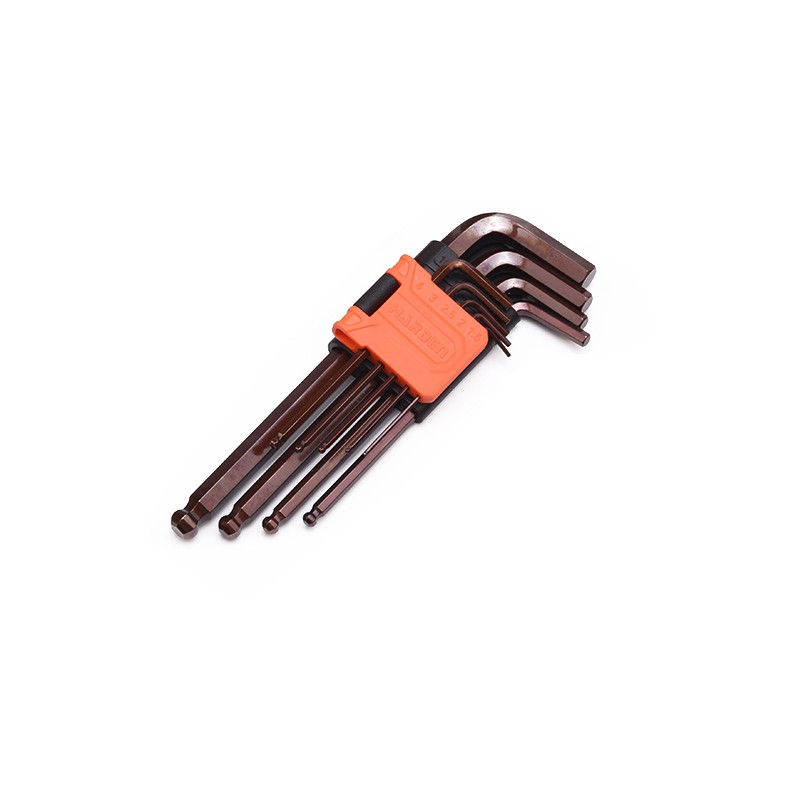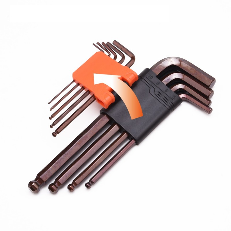 Edzett króm-vanádium acélból készült kulcsok. Mérettartomány: 1.5,2,2.5,3,4,5,6,8,10 mm. A gömbvégű kialakítás megkönnyíti a kulcs behelyezését, lerövidíti a munkához szükséges időt és merőlegestől elhajló szögben is lehetővé teszi a használatot. metrikus gömbfejű imbuszkulcs készlet 9 darab erős, rozsdamentes acélból készült kulcsot tartalmaz különböző méretekben. Ez a praktikus készlet két feliratozott tartóval rendelkezik, amelyek segítségével könnyen megtalálható a szükséges méret. A tartók falra akaszthatók, így a szerszámok rendezettek és könnyen hozzáférhetők maradnak.