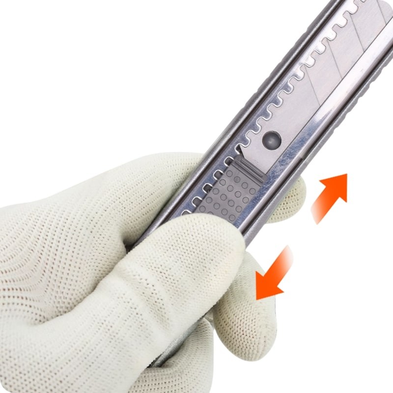 Cinkötvözet fémház és rozsdamentes acél vágócsatorna a tartósság érdekében. Fémmegvezetésnek köszönhető biztonságos pengetartás erős nyomás esetén is. Vékony kialakítás a könnyű kezelhetőség, precíz vágás és kényelmes tárolás érdekében. Automatikus reteszelésű pengecsúszka. Beépített pengeletörő a használt szegmensek egyszerű és kényelmes eltöréséhez. Zsebcsipesz - hordozható és könnyen tárolható. 1 db pengével szállítva. Penge: HD-570343
