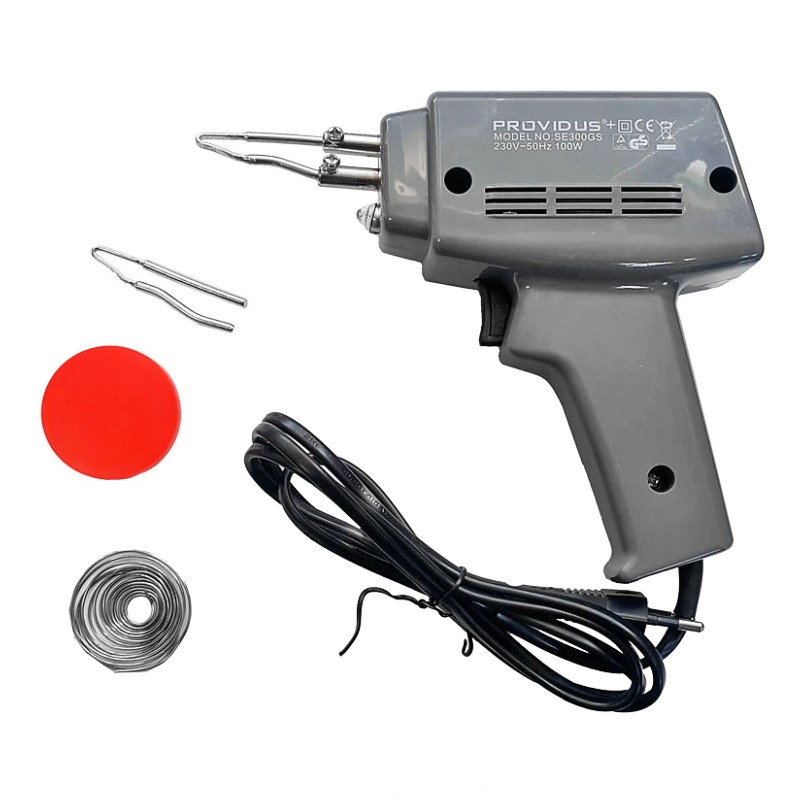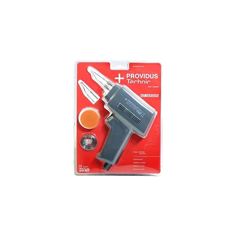 Az olasz Providus cég forrasztópákája kényelmes műanyag nyéllel rendelkezik, és nem professzionális munkákhoz készült. A készlet tartalmaz egy hegyet, tinolt és fluxuspasztát. Teljesítmény: 100W. Vezeték hossz: 1,5m. Tápfeszültség: 230V. Cserélhető pákahegy.