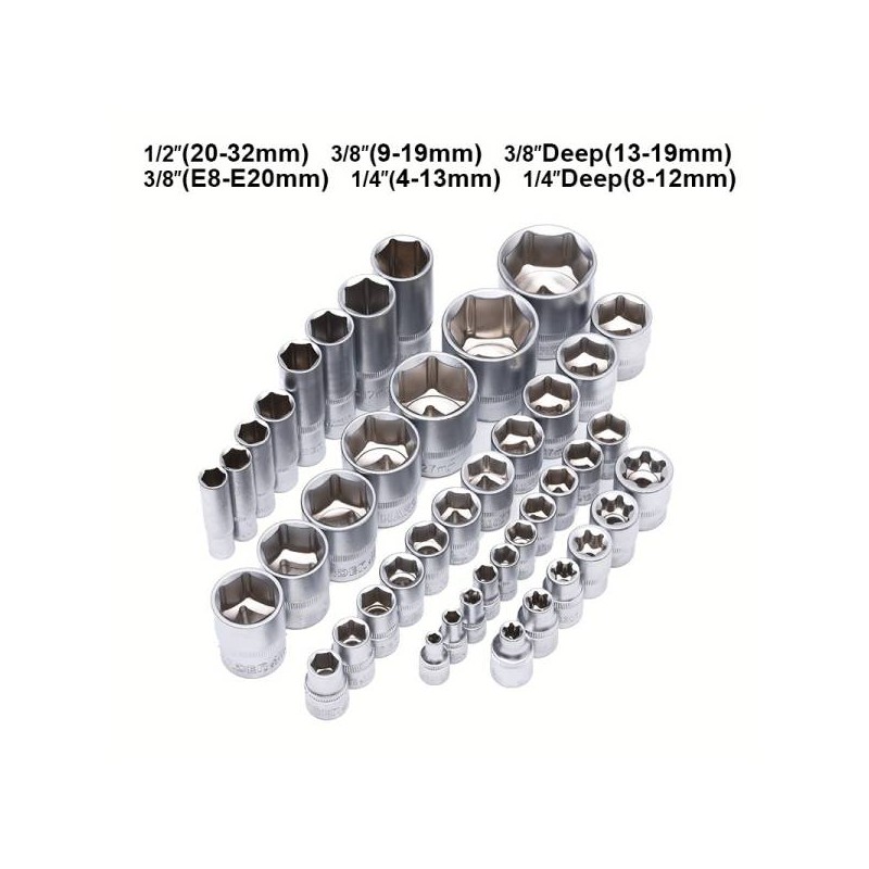 - Dugókulcsok 3/8" (hatszögű): 8-9-10-12-13-14 -15-16-17-18-19 mm