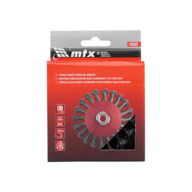 A 100 mm átmérőjű, 0,5 mm vastag csavart huzalból készült sörtékkel rendelkező 74609 mátrix „lemez” kefe egy M14-es anyával sarokcsiszolóra van felszerelve. Lemez alakúra készül, így sík és sarokfelületek durva (nagyoló) megmunkálására is alkalmas. Eltávolítja a rozsdát, szennyeződéseket, festékbevonatokat, alkalmas hegesztési varratok tisztítására. 12 500 ford./perc sebességig történő használat meghosszabbítja a fúvóka élettartamát.