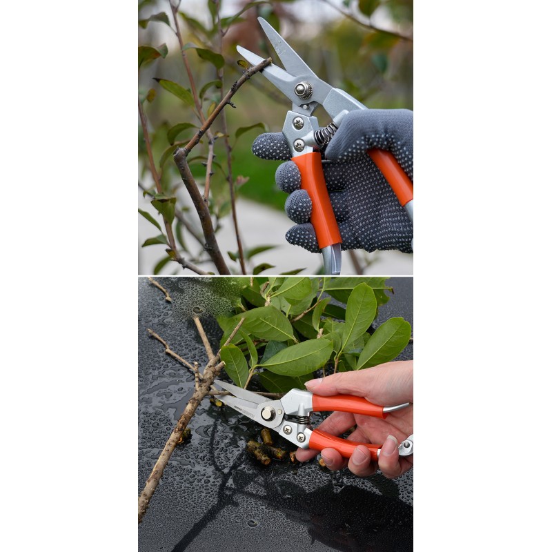Könnyű, erős metszőolló, kertben, gyümölcsösben, szőlőben egyaránt használható. Tartós, éles acél pengék. Cinkötvözetű nyél PVC bevonattal. Beépített energiatakarékos rugóval rendelkezik, amely megkönnyíti a metszést, valamint hosszú élettartamot és tartósságot biztosít. A végén található biztonsági zár könnyen kezelhető.Könnyedén vágja a legfeljebb 10 mm átmérőjű ágakat.