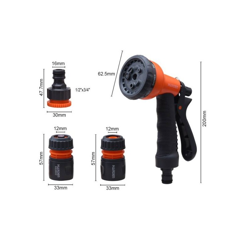 Öntöző készlet 4r. 1/2" 8 funkciós öntözőpisztollyal Harden