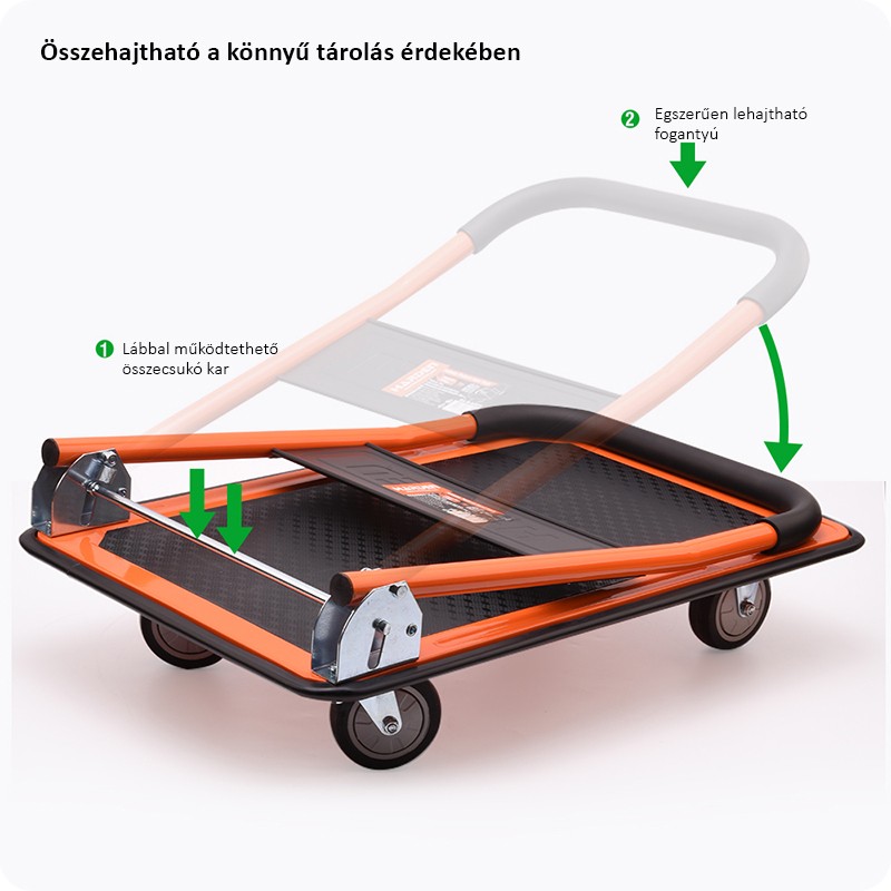 A HARDEN 150 kg, illetve 300 kg teherbírású összecsukható platform kézikocsi különféle helyzetekben ideális, ahol közepes súlyú tárgyakat kell gyakran és hatékonyan mozgatni.